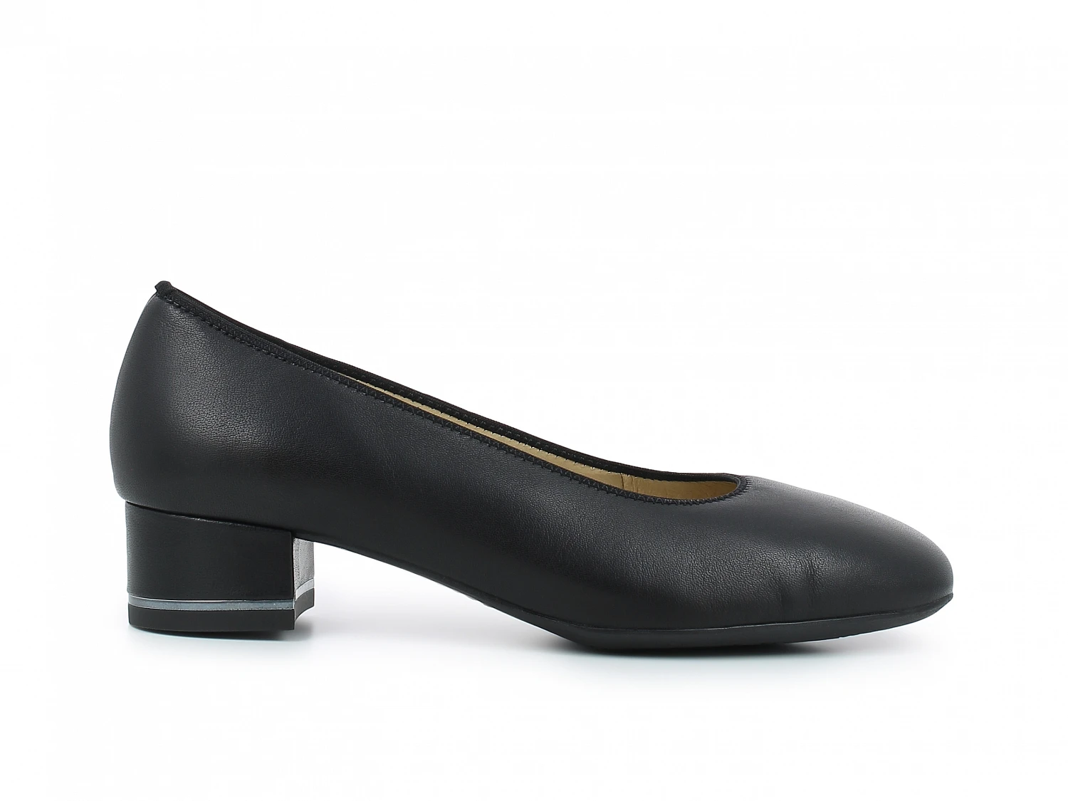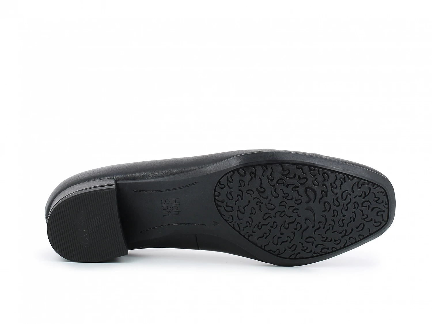 GRAZ-HIGHSOFT er en lav sort skinn pump med avrundet tupp. Skoen har high soft dekksåle, som gjør skoen enda mer behagelig å gå med.
