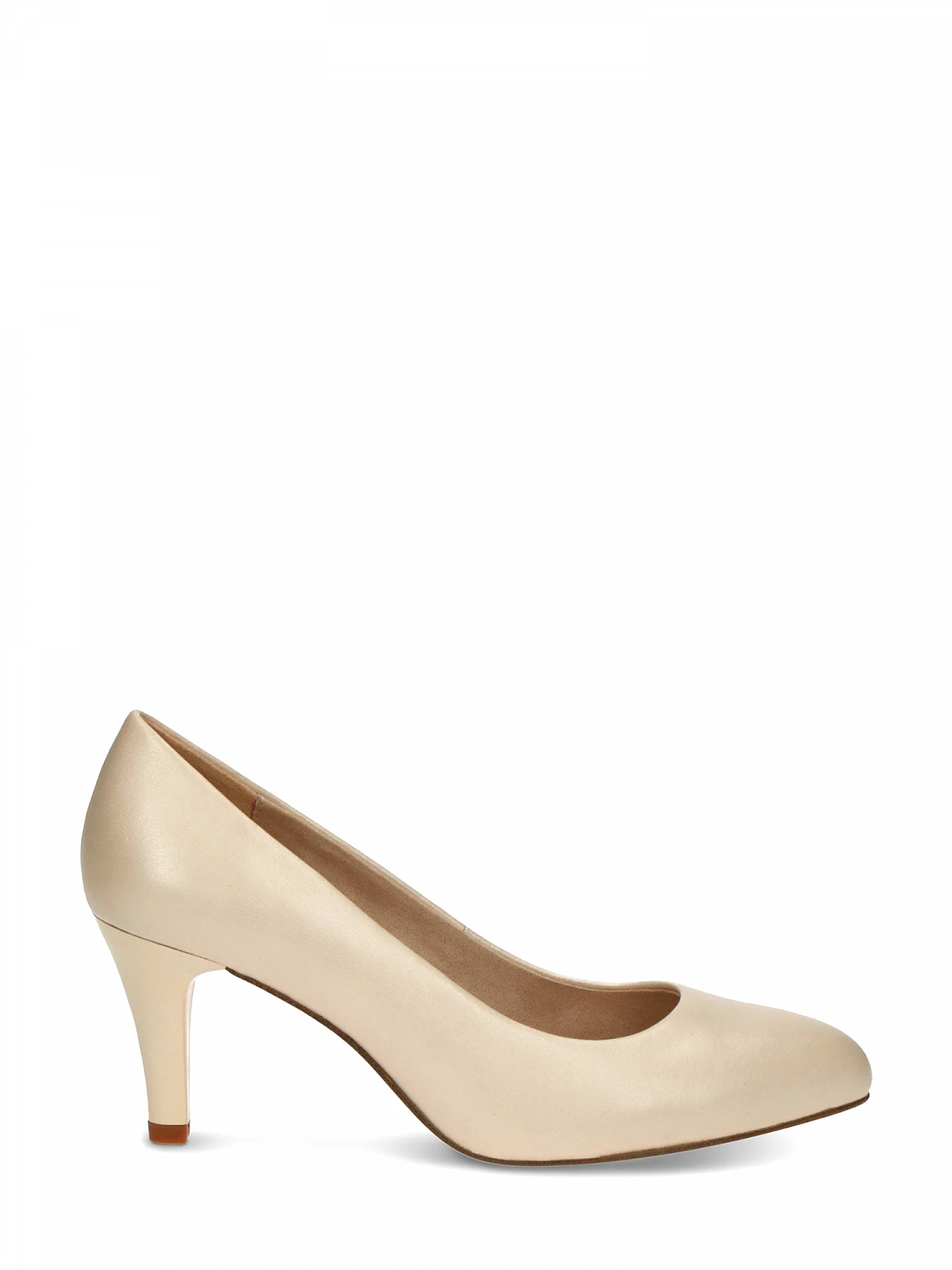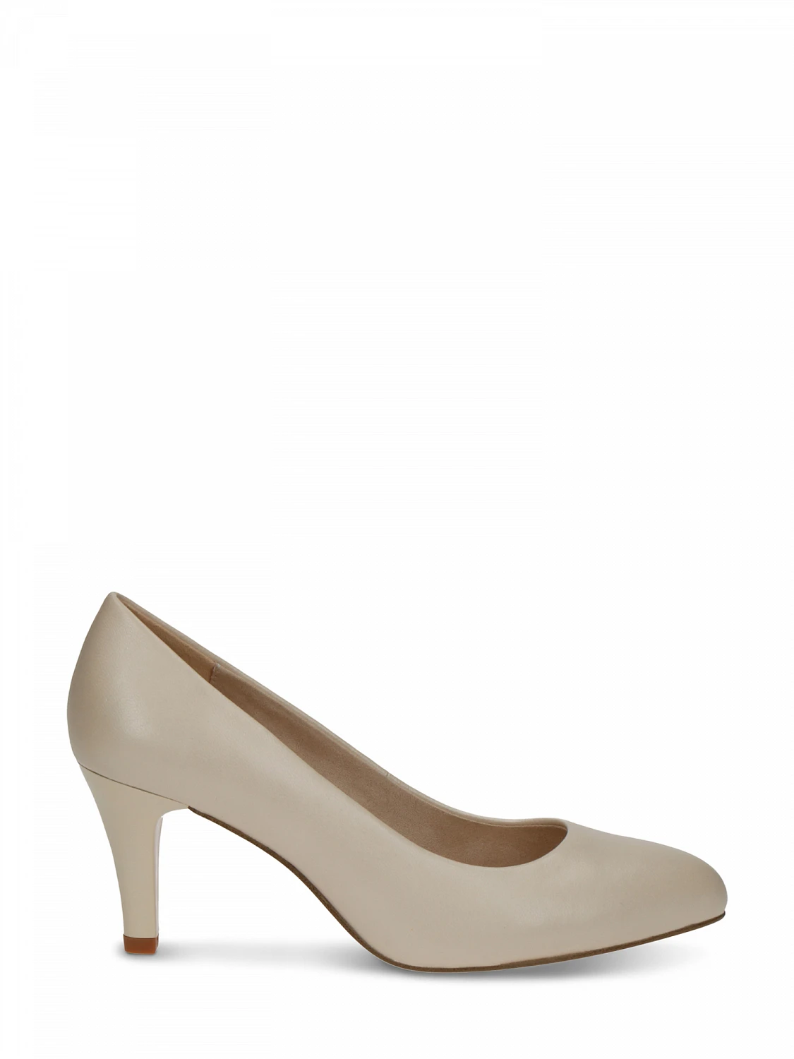 Klassisk kremfarget pumps i skinn fra Caprice. G-skobredden sikrer en behagelig passform.