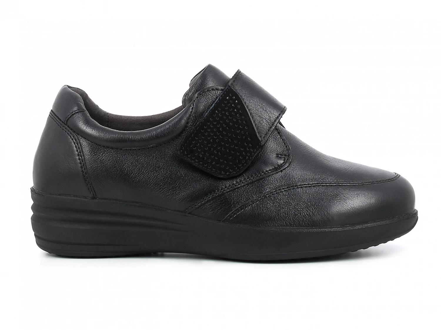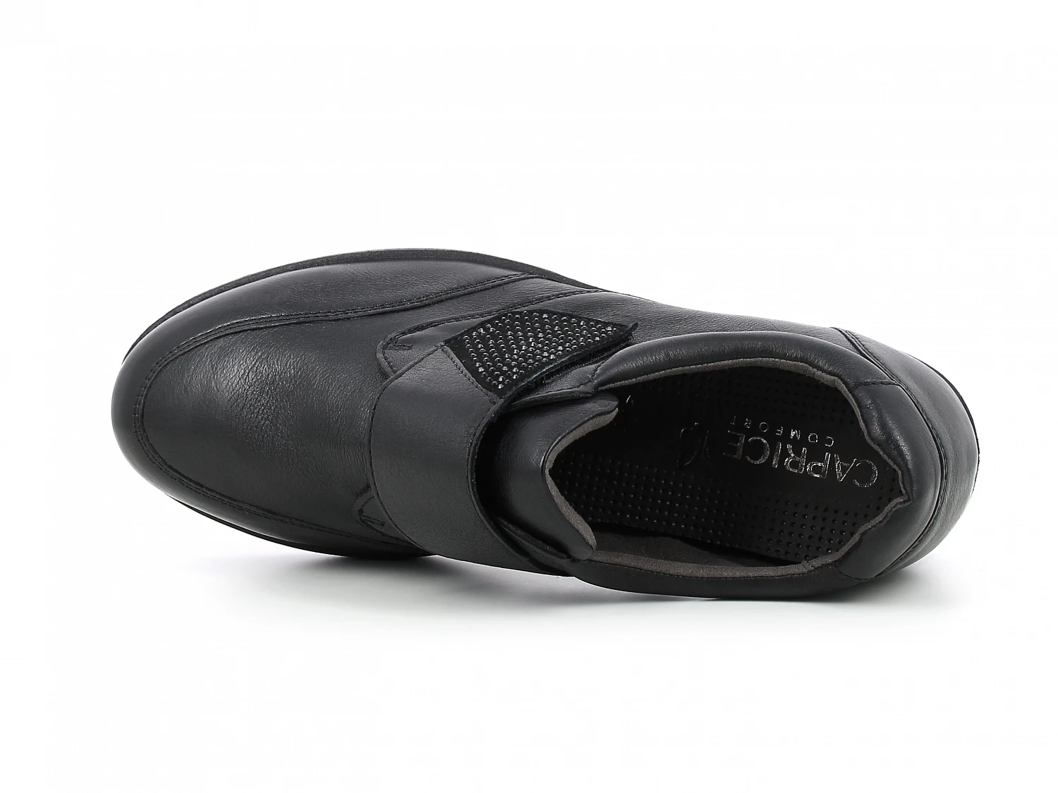 Caprice sko. Laget av naturlig skinn. Innersålen er i tillegg uttakbar. Sålen er laget av høykvalitets materiale. Borrelås justerbar. Stabil og sklisikker såle.