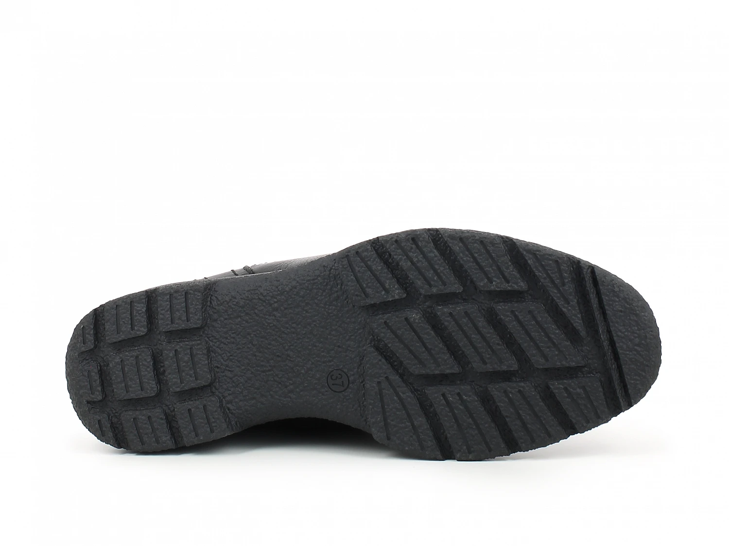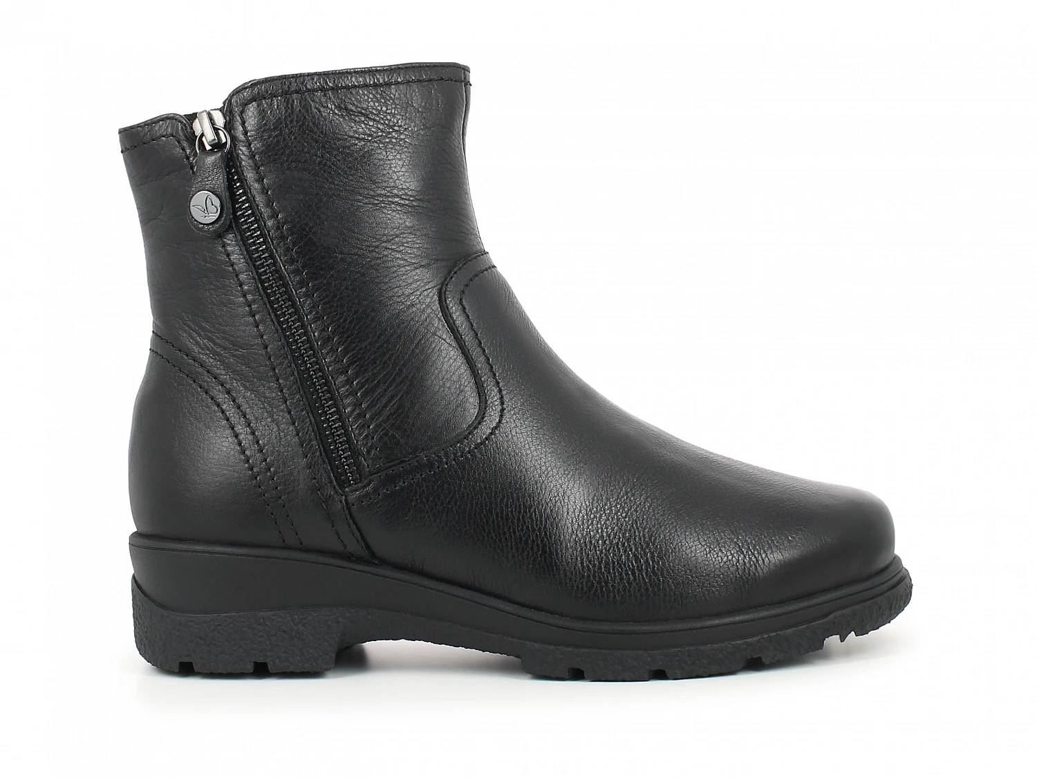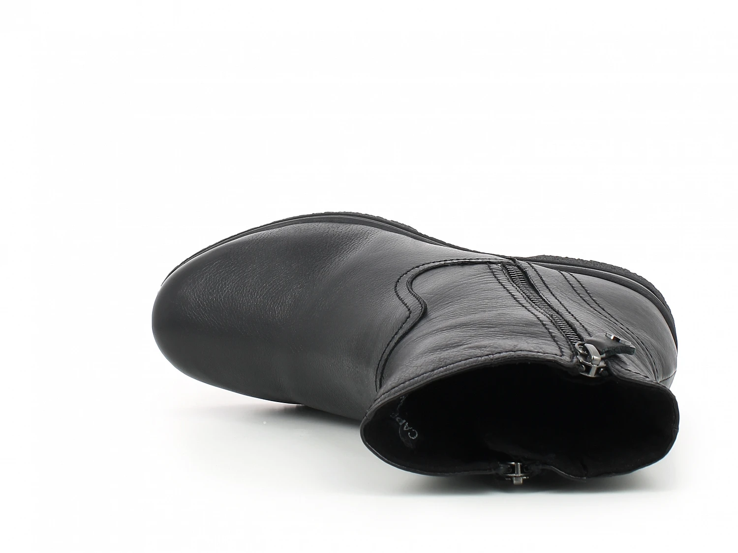 Sort dameskolett fra Caprice i ekte skinn. Skoletten har bred lest med vidde H.