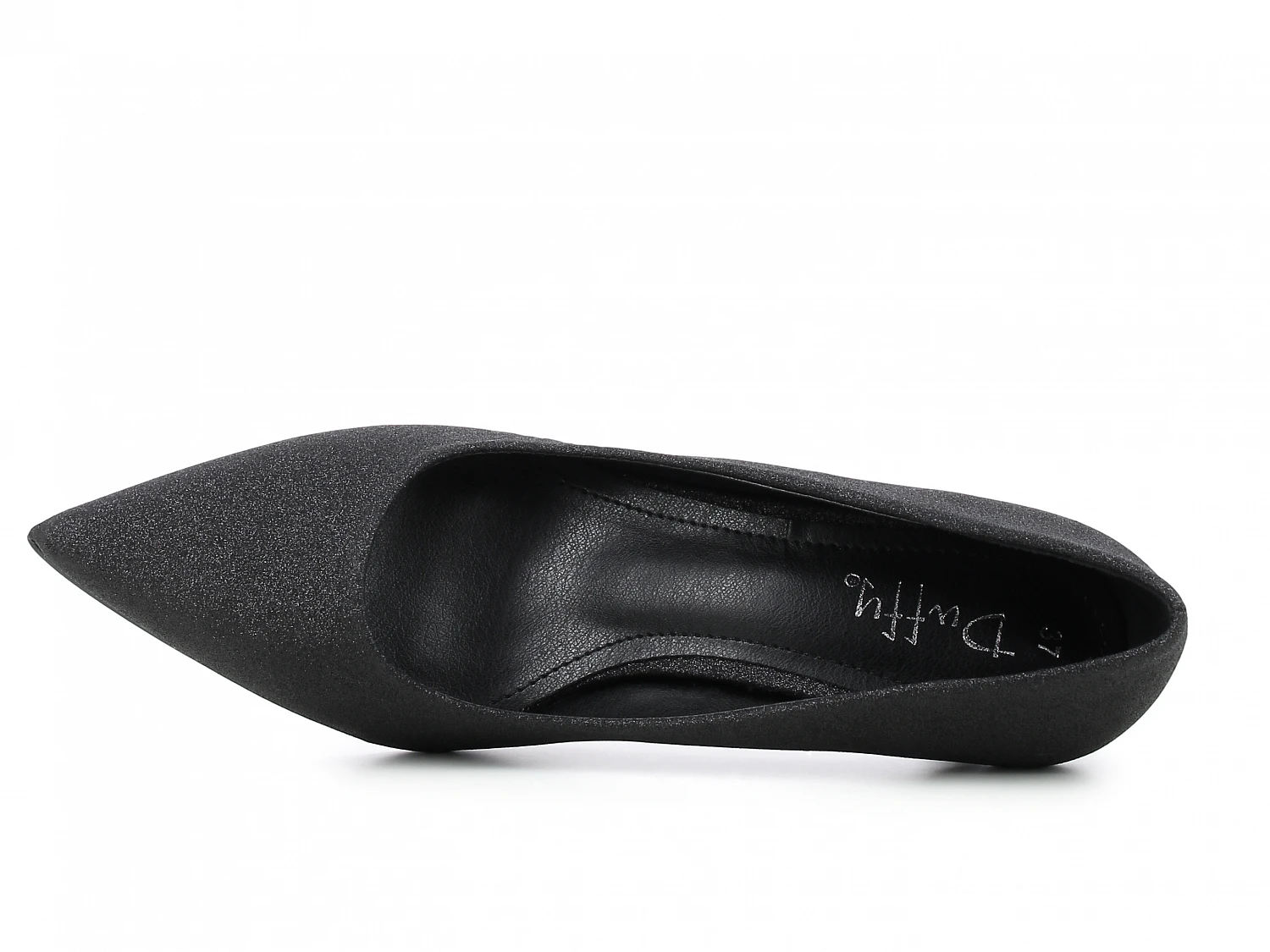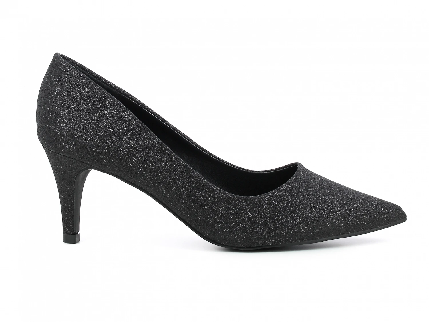 Lekker pumps i et glittermateriale, tekstilfôr, syntetisk såle. Hælhøyde 7 cm