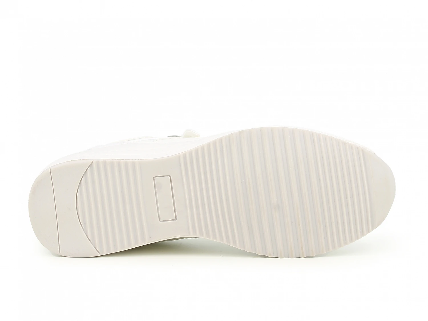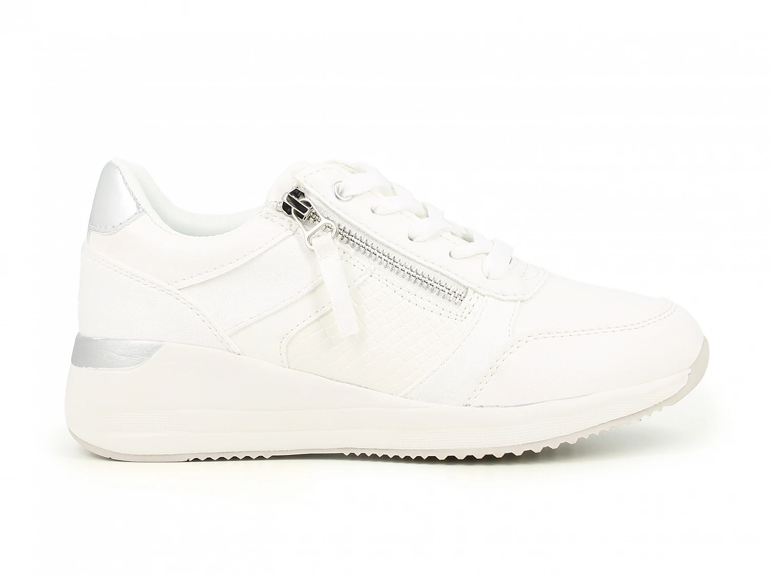 Hvit sneaker med kilehæl fra Duffy. Den har snøring og glidelås slik at den er lett og ta av og på.
