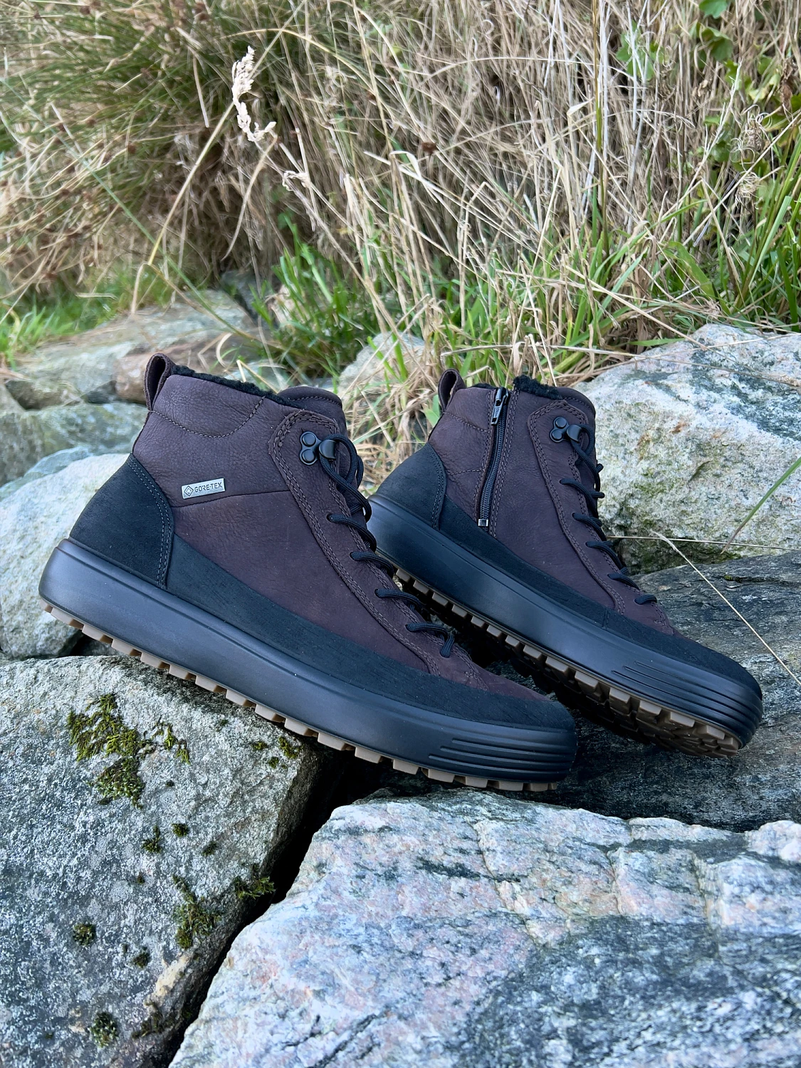 Denne utgaven av ECCO SOFT 7 TRED er en trendy og komfortabel høy støvel som er som skapt for kaldt vær. Den har en nyansefarget yttersåle og GORE-TEX-teknologi som bidrar til å holde føttene tørre. I tillegg til at den er laget med varmt fôr, har denne modellen snøring med kroker og lissehull som gjør det mulig å bruke dem med pløsen ned for litt ekstra snert. Her får du praktisk nytteverdi og gatestil i like store doser.