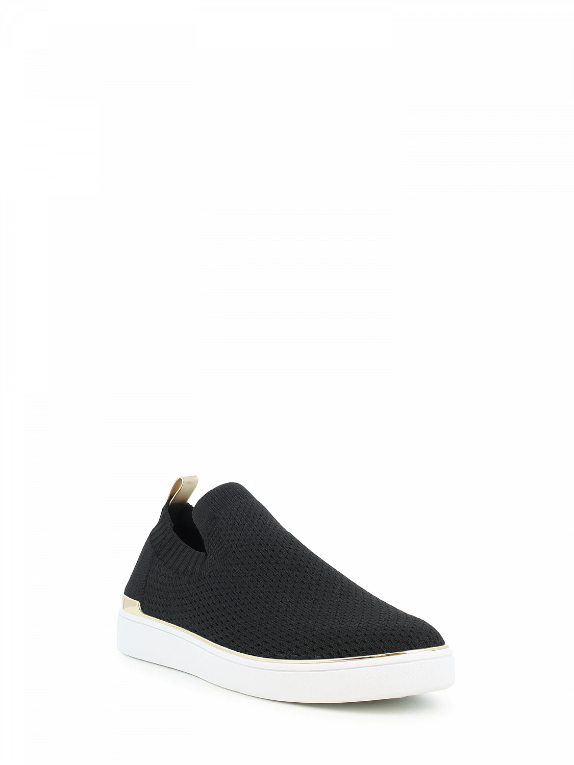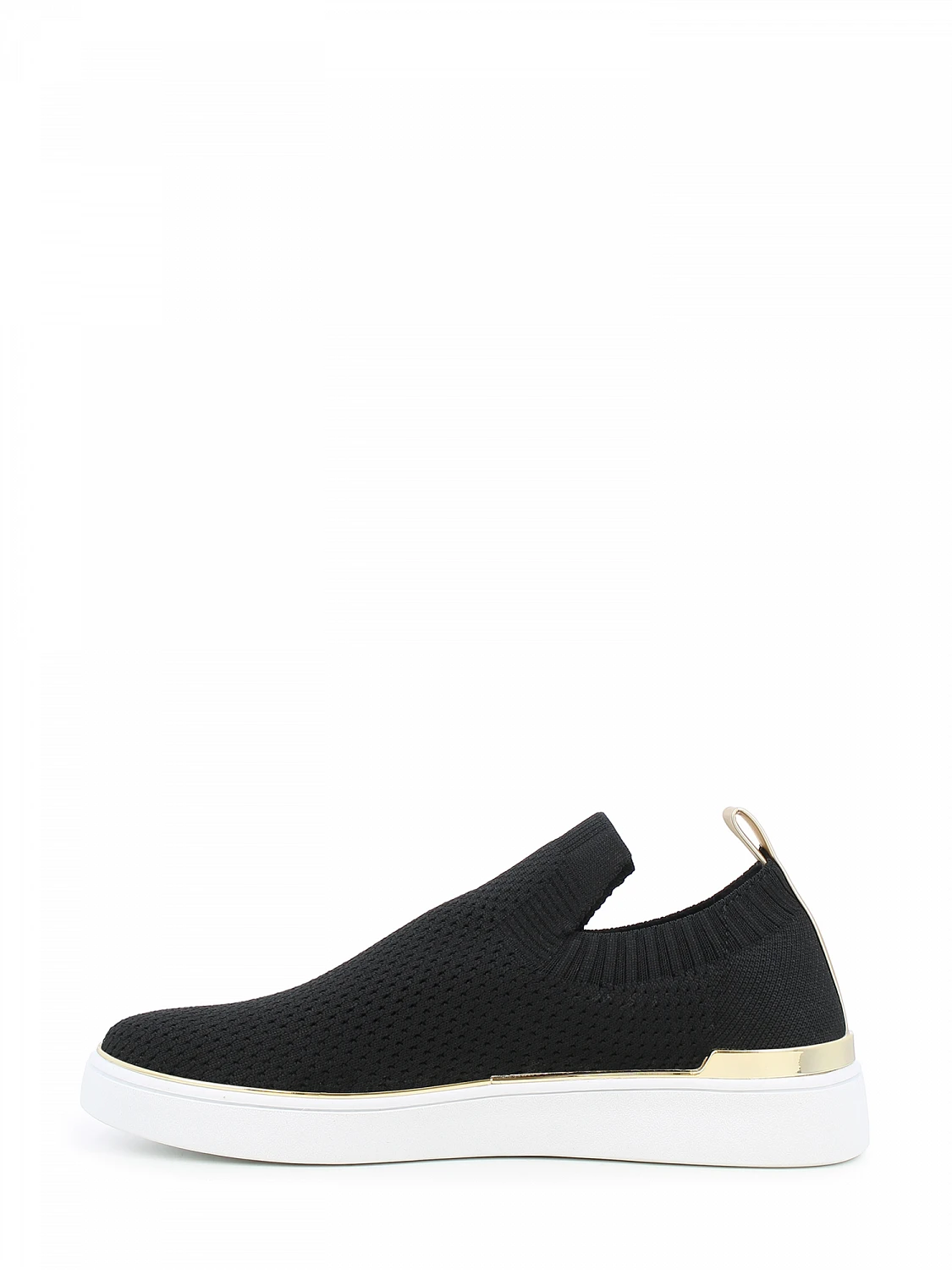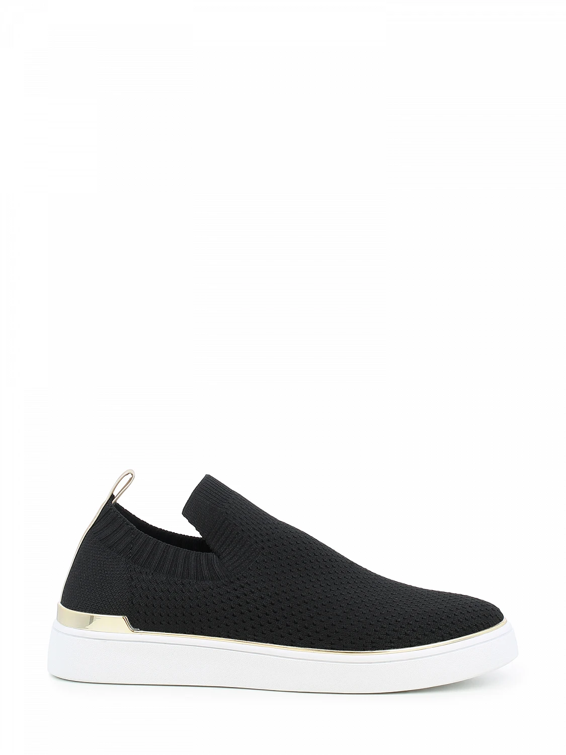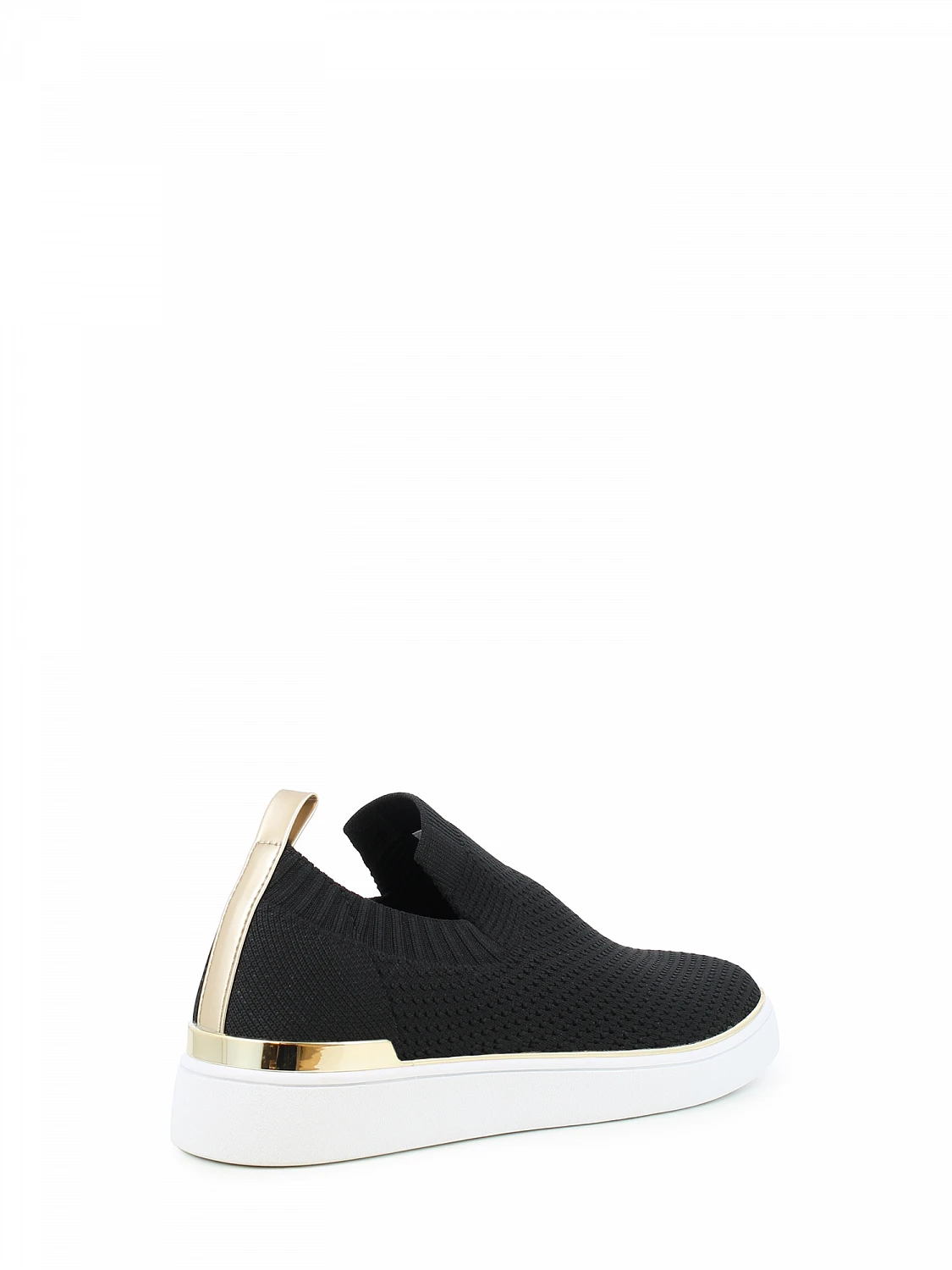 Lav slip-on sneaker i sort tekstil med lekre gulldetaljer.