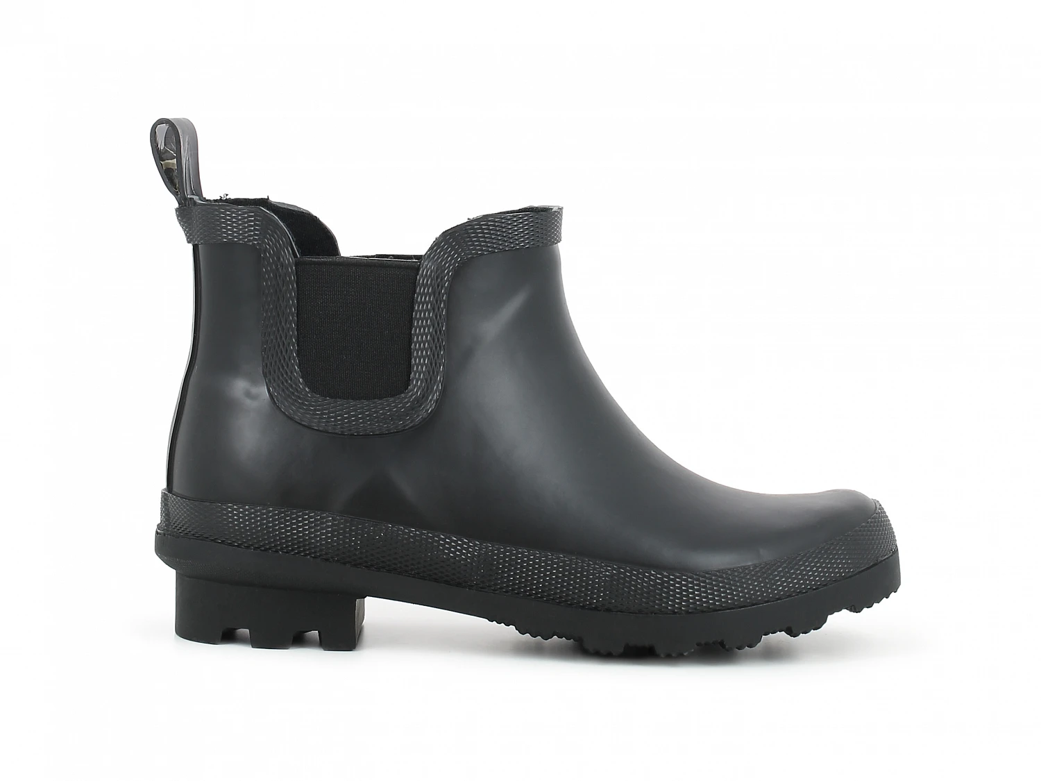 Trendy og sporty gummistøvel til barn i sort. Gummistøvelen har en pratisk stikk i sidene for enkelt å ta av/på og behalgelig å gå med.
