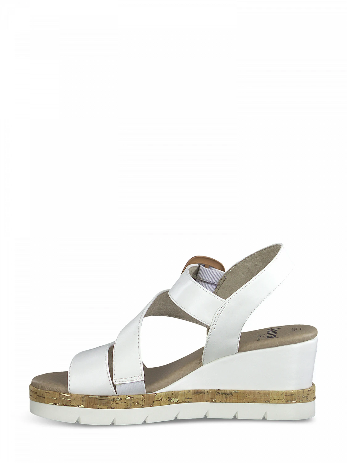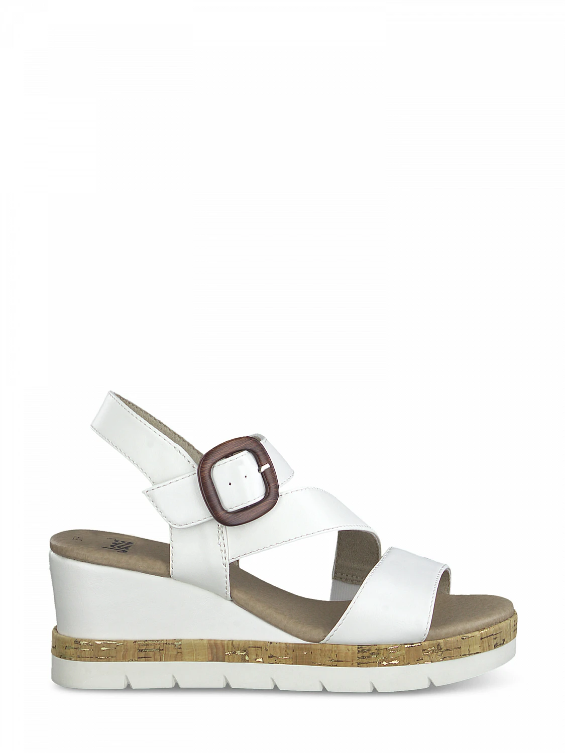 Nå er tiden inne for denne hvite kilesandalen fra Jana. Den er ikke bare vakker, men også komfortabel. En kilehæl gir deg mer grep slik at du vil tråkke mer selvsikkert over de irriterende ujevnhetene.