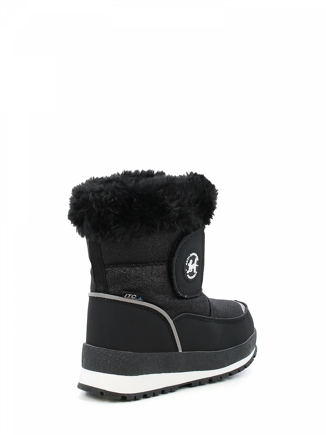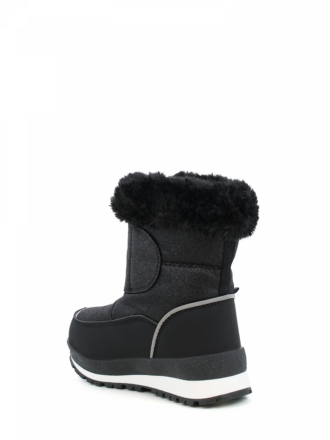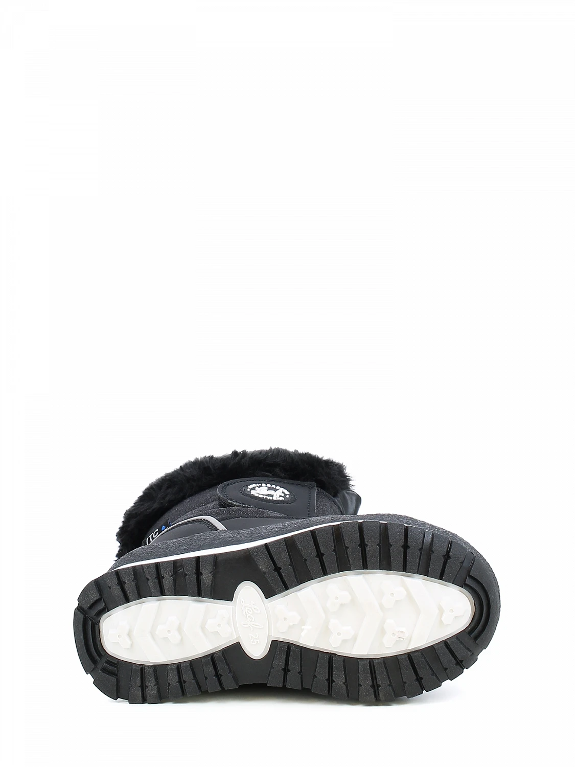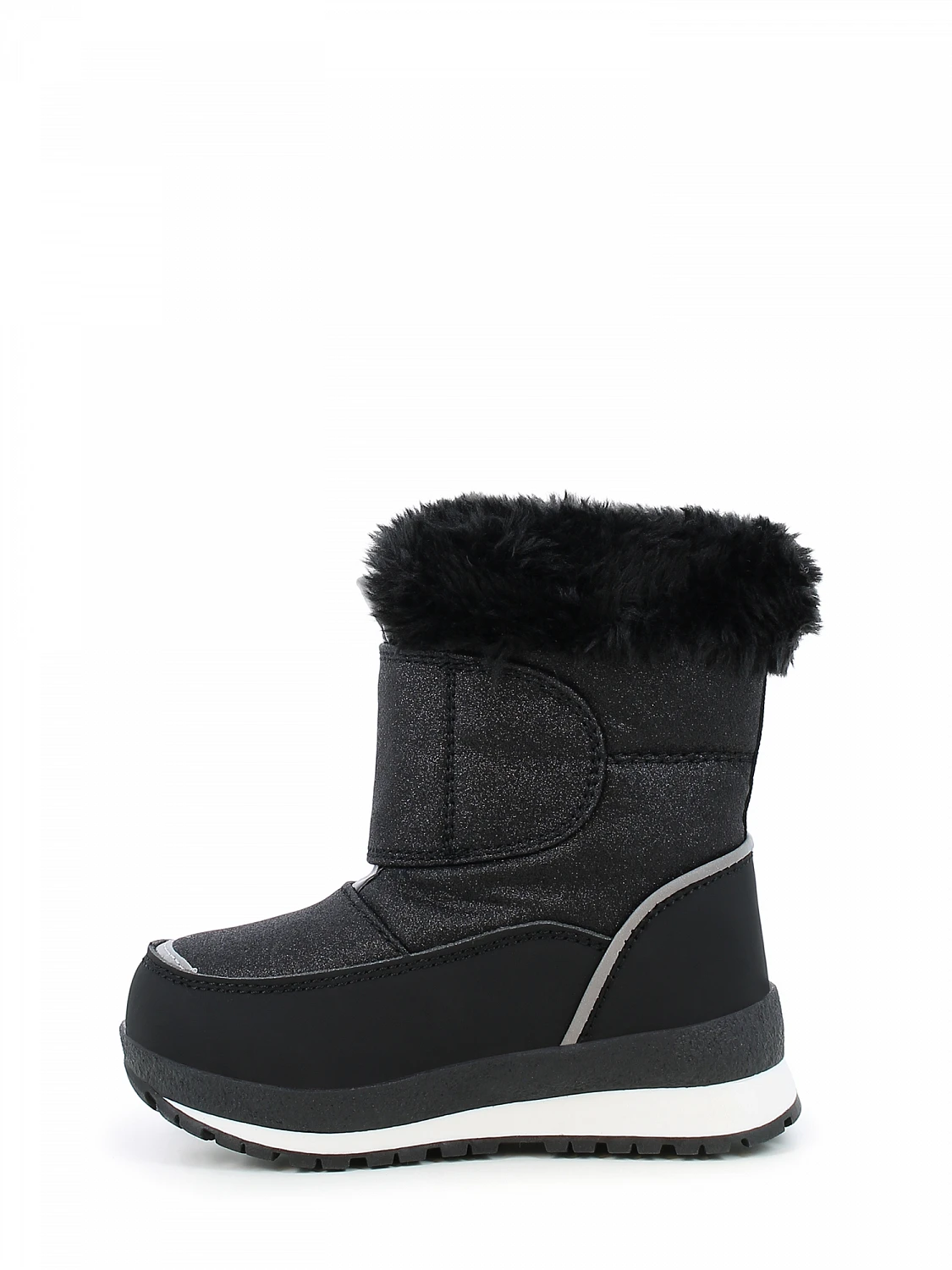 Høy, vanntett modell med foring i kunstig skinn. Øvre del i skinnimitasjon med borrelåsstropp foran. Sklisikker yttersåle.