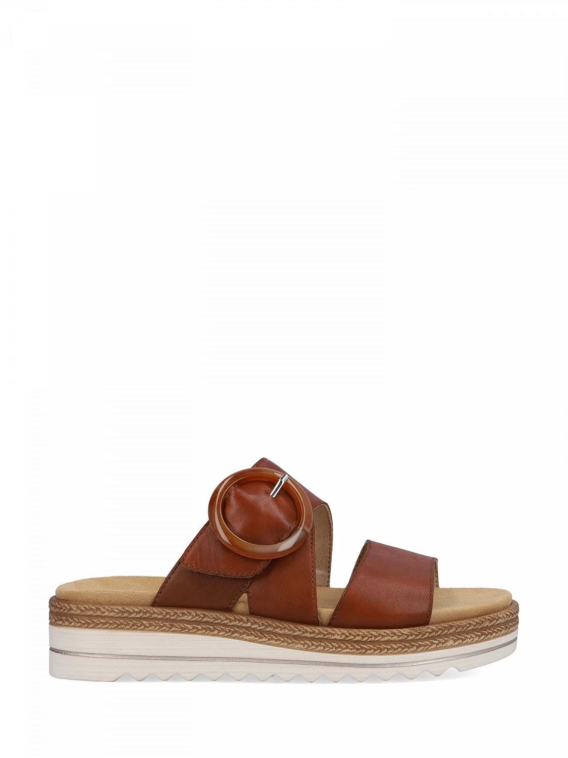 REMONTE fottøy er en høyere linje av RIEKER-merket, fottøyet er preget av kvaliteten på materialene som brukes. Det er to brede stropper på læroverdelen, den ene er en borrelås, som er dekorert med en karakteristisk spenne. Den myke innersålen er uttakbar og du kan lufte den når som helst. Disse tøflene vil holde deg med selskap på sommerdager og -netter.