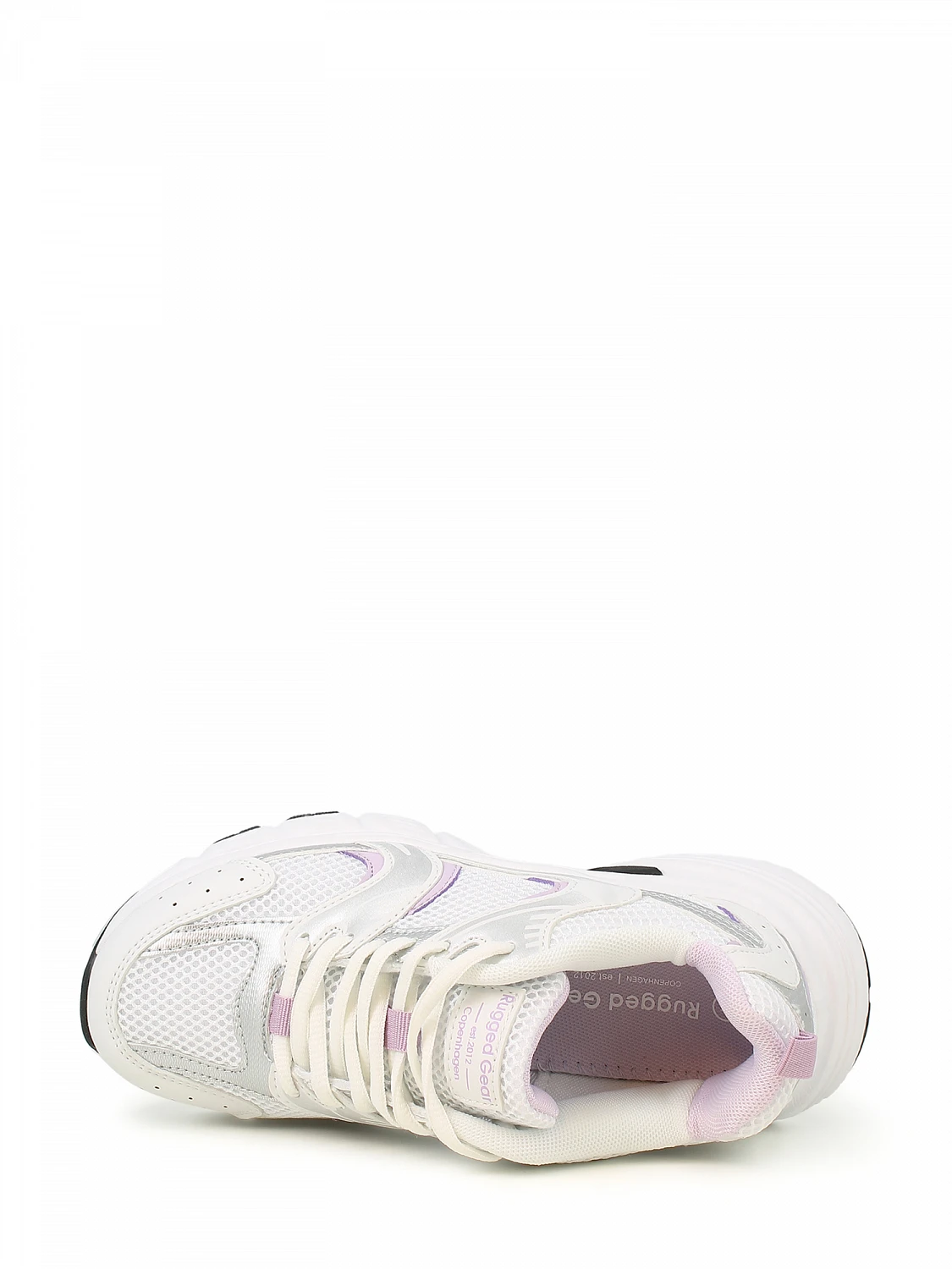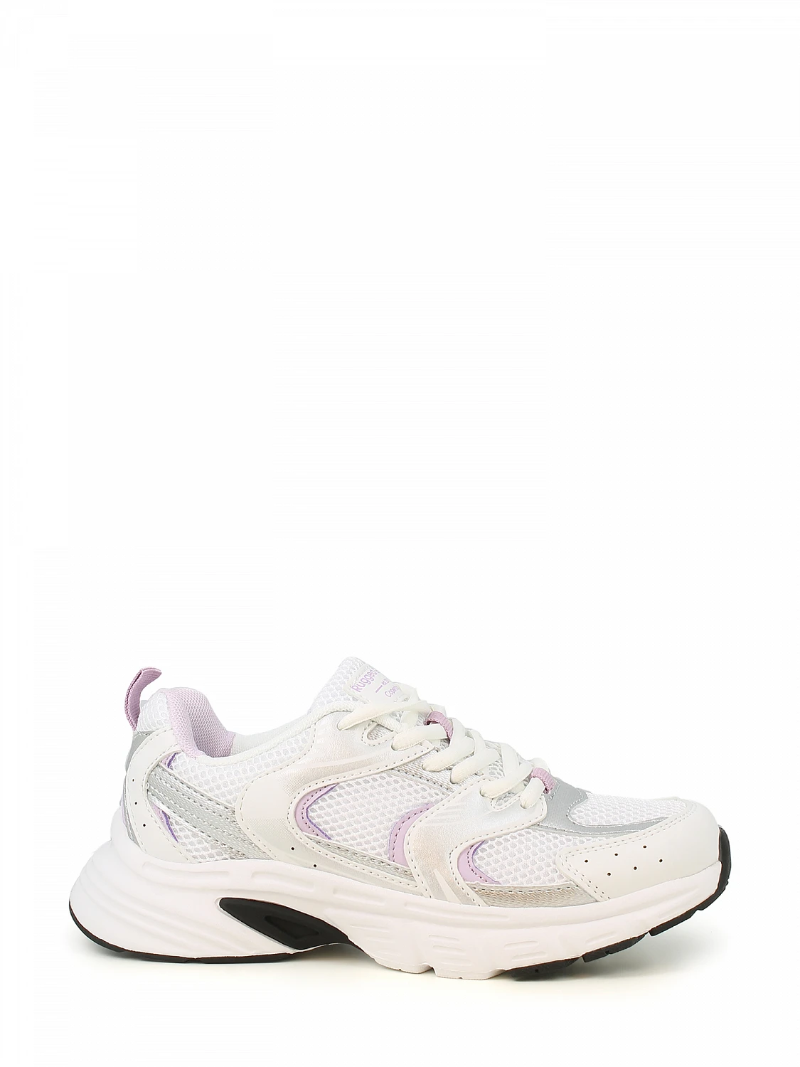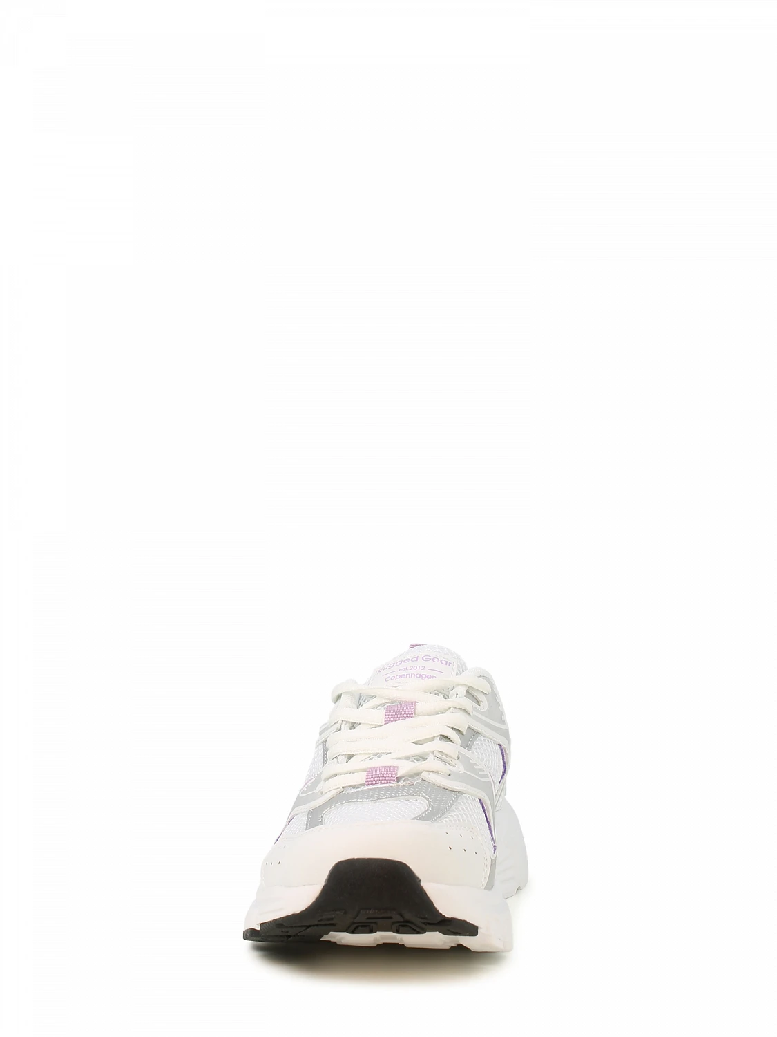 Hvit lett sneaker med trendy design og kule detaljer i sølv og lilla.