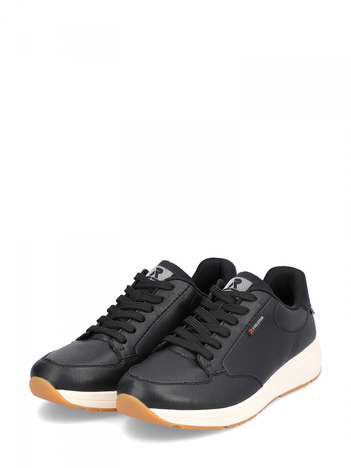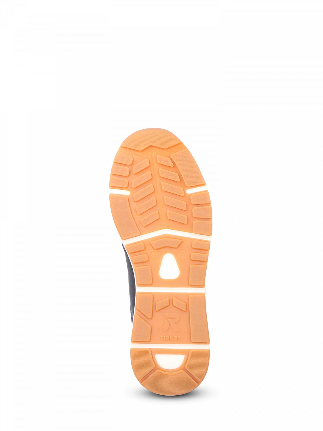 Rieker Revolution er en ny serie moderne sportssko med stor vekt på komfort og bekvemmelighet selv under hele dagen. Med denne Rieker-skoen vil du understreke stilen din og sette pris på dens universelle bruk. Takket være den svarte skinnoverdelen kan du kombinere dem med forskjellige klær og enda mer fargerike. Små dekorative elementer i form av en merkevareinnskrift i vristen, hælen og på tungen forstyrrer ikke det enkle helhetlige utseendet. Den komfortable uttakbare innersålen er laget av minneskum og vil sikre komfort hele dagen. Den hvitbrune sålen står i kontrast til overdelen og fullfører helhetsinntrykket. Det avhenger bare av deg om du bruker dem med jeans eller sportsbukser.
