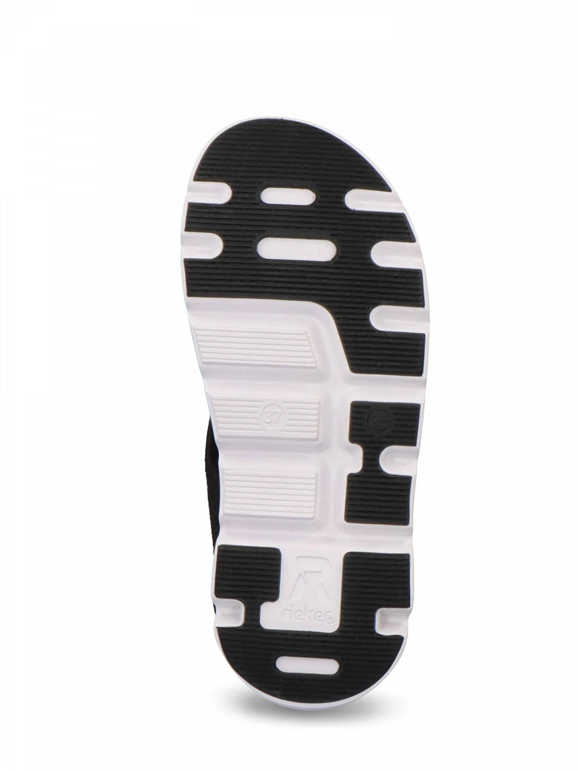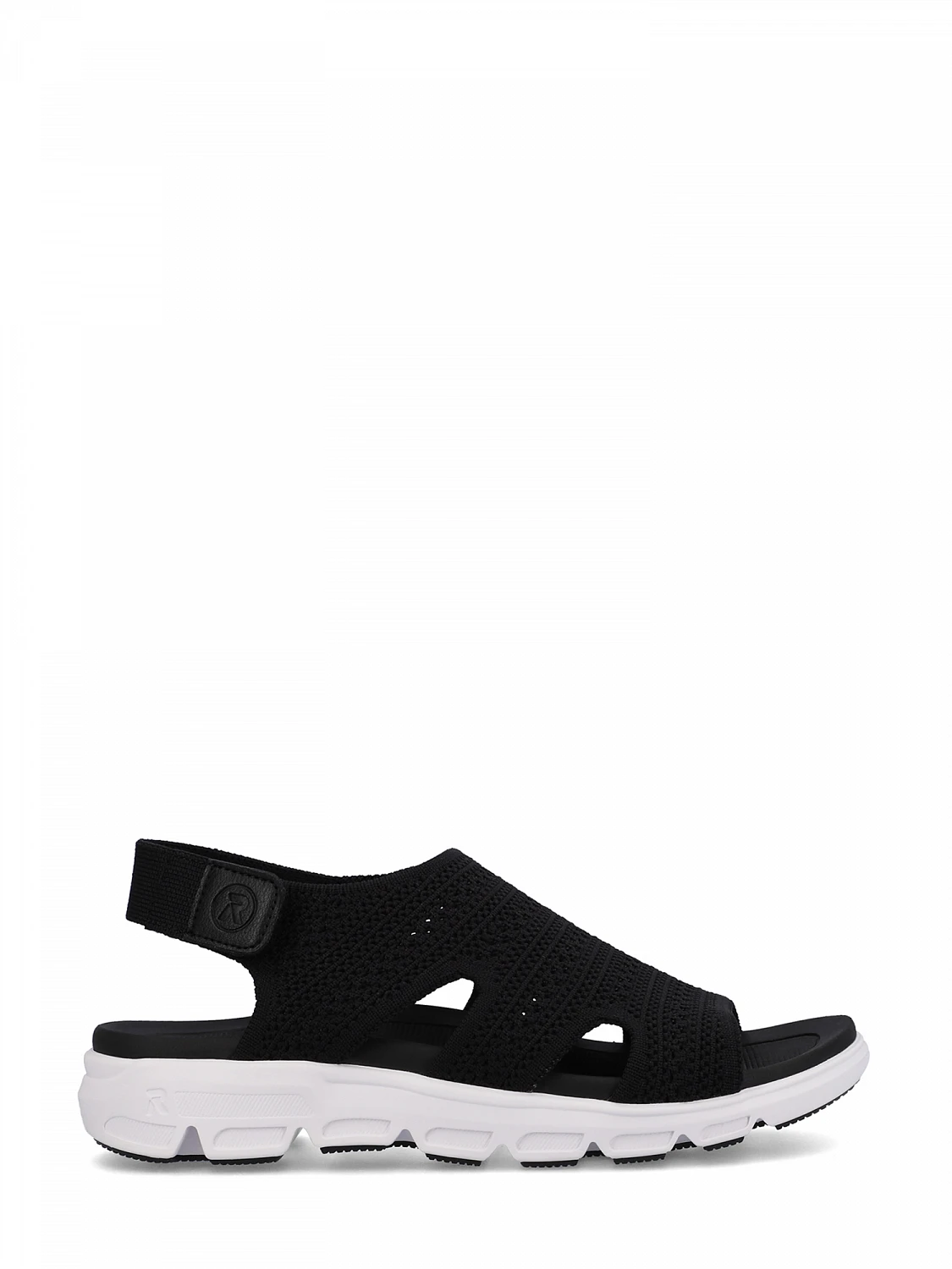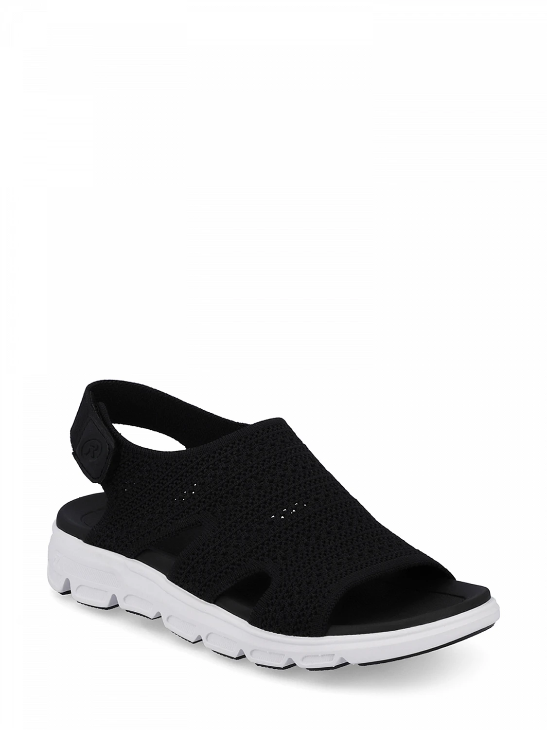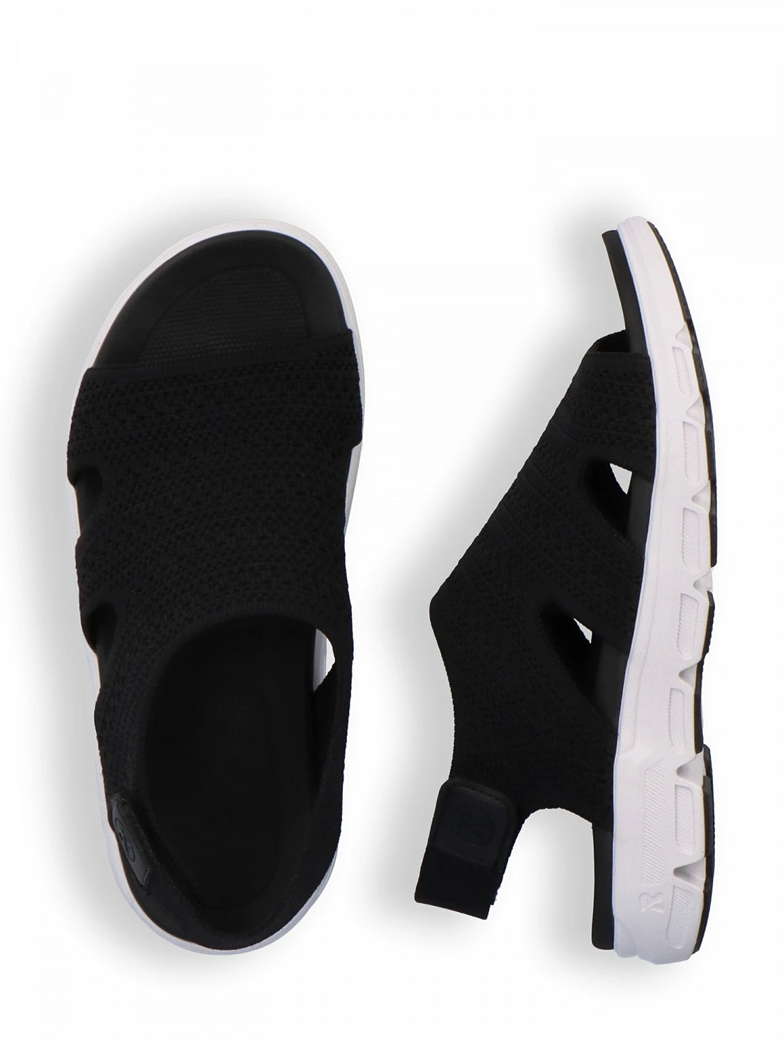 Sporty tekstil sandaler for kvinner med borrelås, myke såler og yttersåle i gummi. En smal lest.