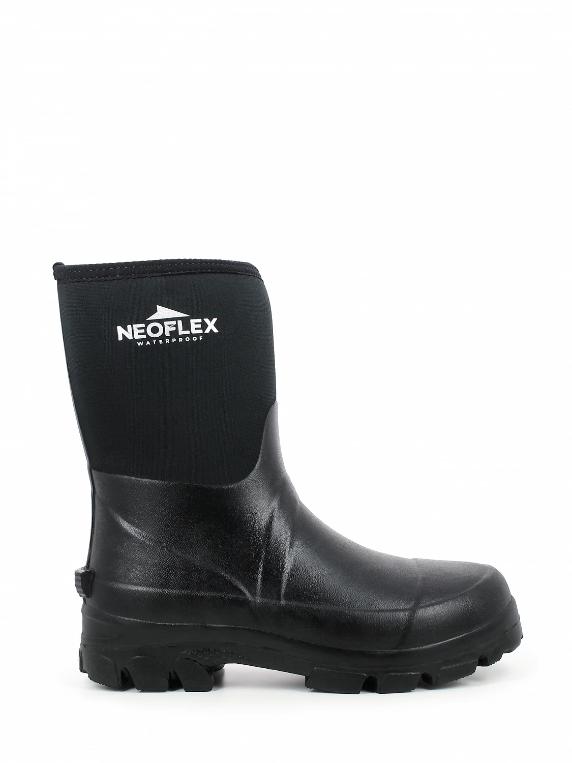 NeoFlex termostøvel i sort. Den er en vanntett, varm og komfortabel allværsstøvel. Støvelen er tilpasset daglig bruk i hagen, skogen, på fjellet og for andre utendørsaktiviteter hele året. NeoFlex er konstruert i neopren og naturgummi. Neopren er samme stoff som blir brukt i dykkerdrakter.