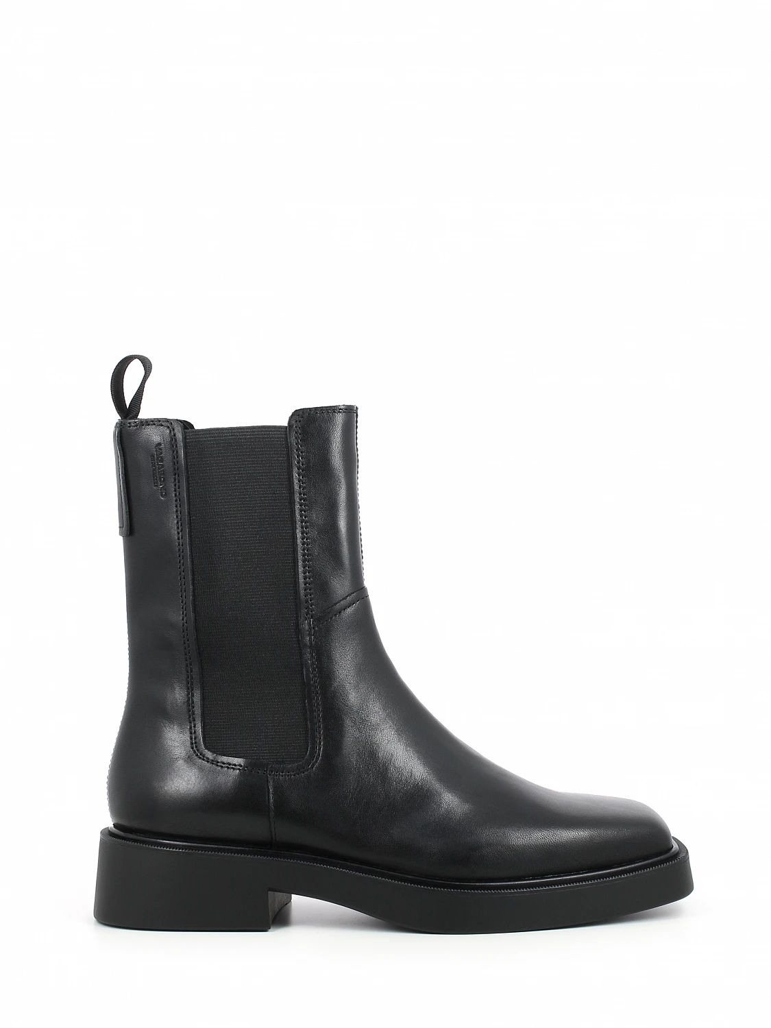 Vagabond Jillian er en moderne versjon av klassiske chelsea-støvler. Stilen er supplert med firkantede tupp og solide yttersåler, noe som skaper et moderne utseende. Det mellomhøye skaftet er laget i svart skinn og har elastiske sidepaneler for enkel bruk. De solide yttersålene og beskjedne hælene gir et subtilt løft for ekstra komfort. Andre detaljer er hempe og dekorative sømmer langs overdelen.