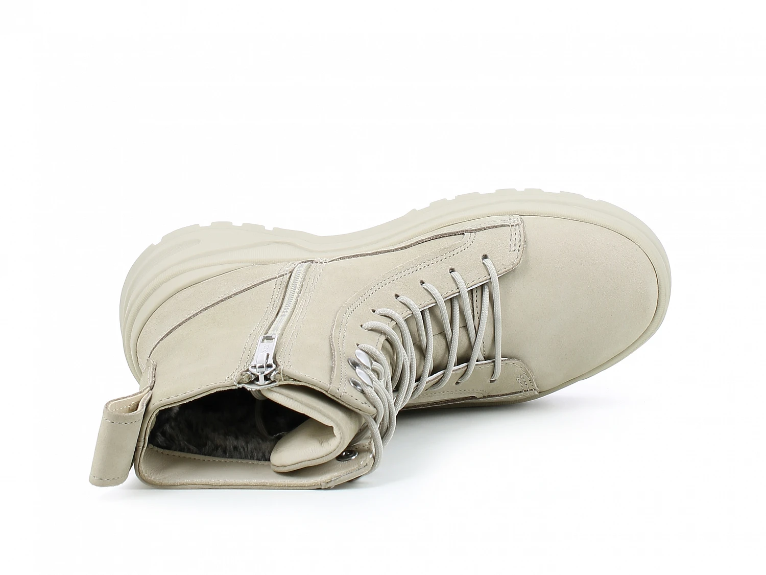 Kul vinterskolett med i lekker nubuk skinn og med god gummisåle. Varmforet med glidelås i siden i tillegg til snøring i front.